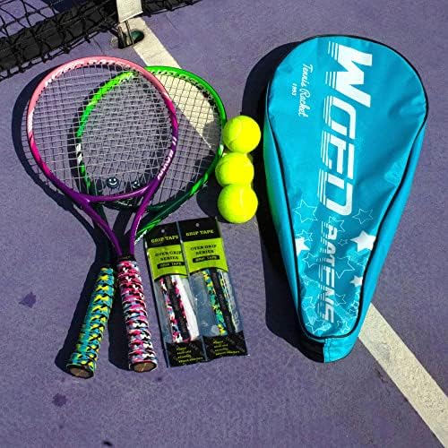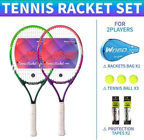 Sport and Youth Design–Tennis Rackets Set include 2 rackets, 3 tennis ball, carry Bag, 2 overgrips, vibrations dampers. It can be used without purchasing additional accessories