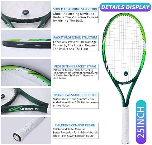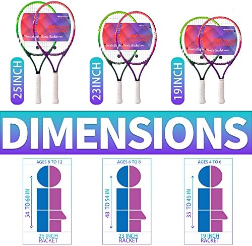 19″ 23″ 25″ Kids Tennis Racket Junior/Youth Tennis Racquet with Tennis Ball Carry Bag Overgrips Vibrations Dampers…